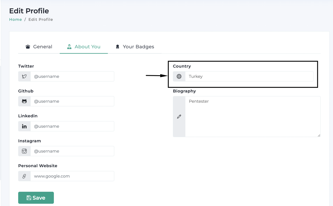 Then click to the "About You" section:
